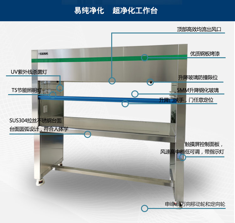 安全可靠的保障措施: 嚴格按照國際電氣安全標準規(guī)范設計,確保產品具有多重安全保護措施,采用柔光型的照明燈與紫外線殺菌燈控制單獨控制,同時需要注意的是紫外線殺菌只能在工作前開殺菌,在人工作時不允許開紫外線殺菌燈,避免紫外線殺菌燈對人體皮膚造成灼傷。