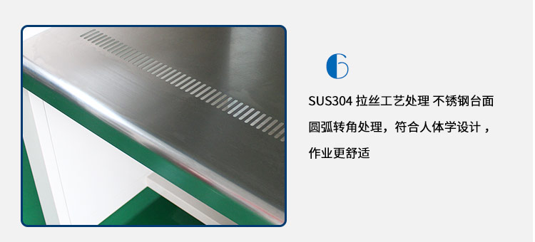 13.設計:操作臺面圓弧形設計,臺面新穎型沖孔設計,人性化設計,員工作業(yè)更舒適;